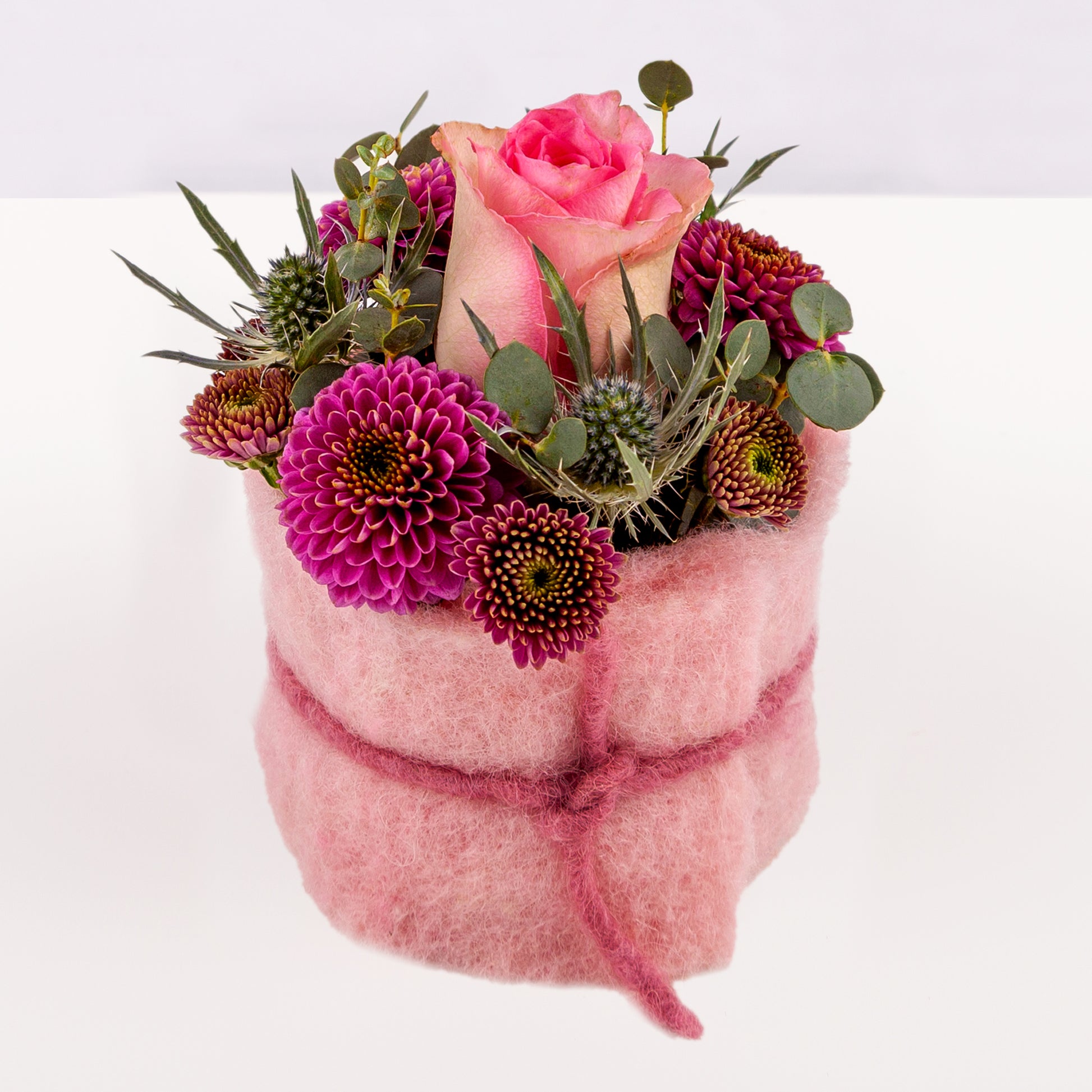 Das handgefertigte Blumentörtchen und eine Grußkarte mit deiner persönlichen Botschaft machen jede Straussbox zu einer unvergesslichen Geste.